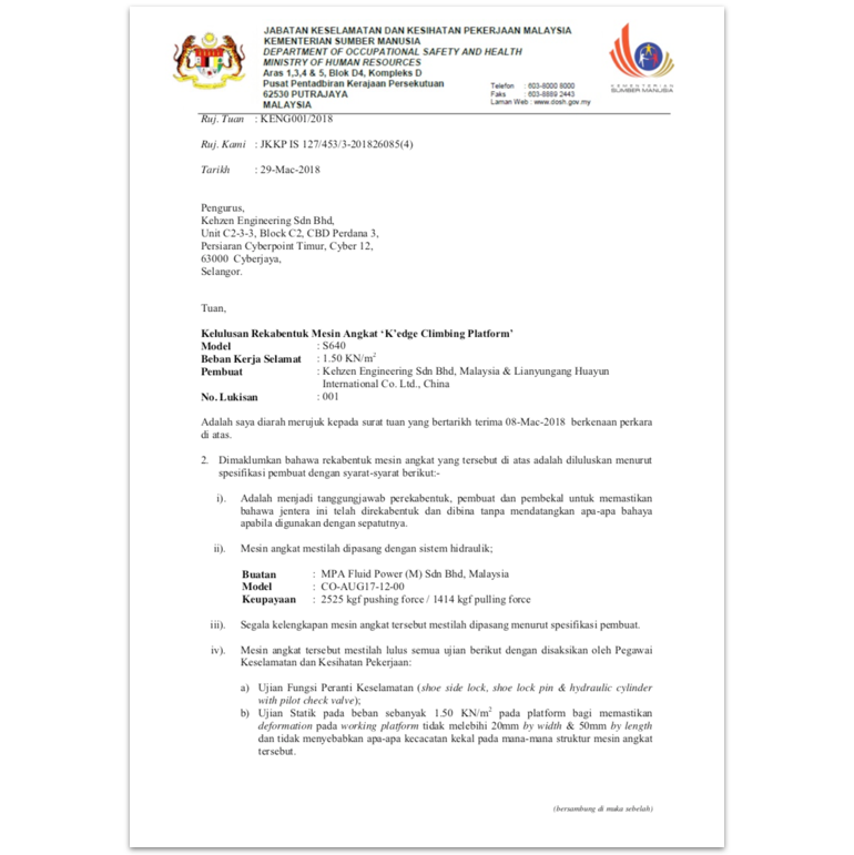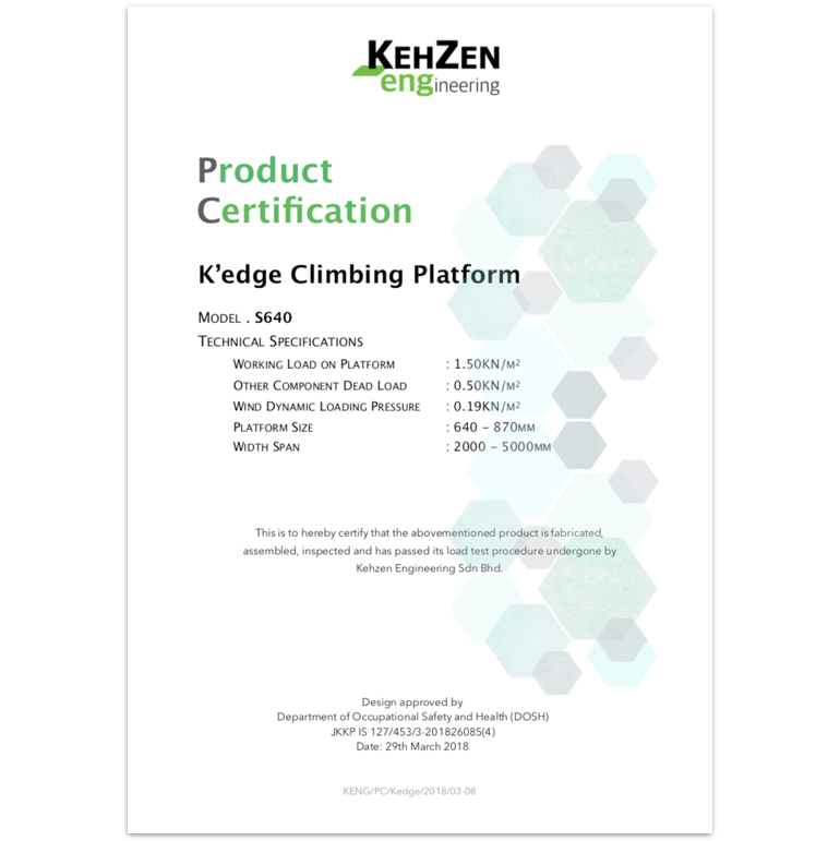 K’edge Climbing Platform’s design is approved by Jabatan Keselamatan dan